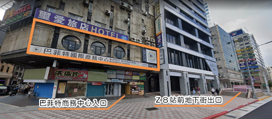 詢問路人或看牆上指引地圖找到地下街Z8出口,出來後找到巴菲特國際商務中心2F。